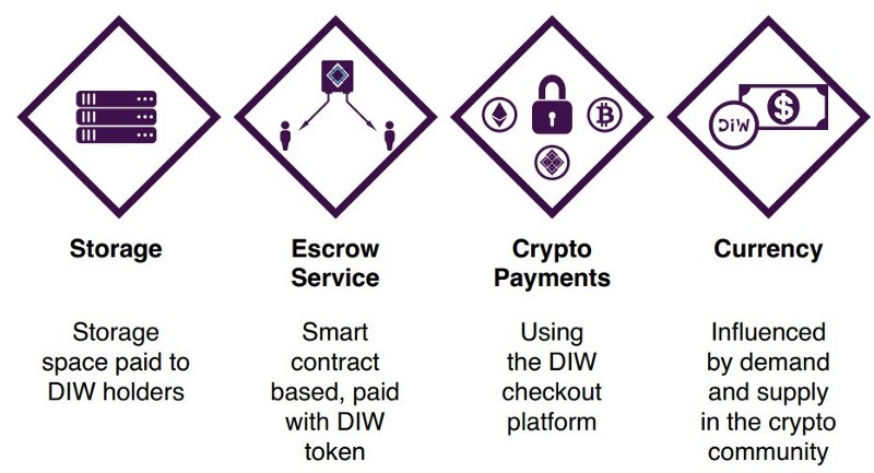 Diw token (DIW) will be used to purchase and make incentive payment on the Diw ecosystem. It will also be used to provide incentive for early adopters.